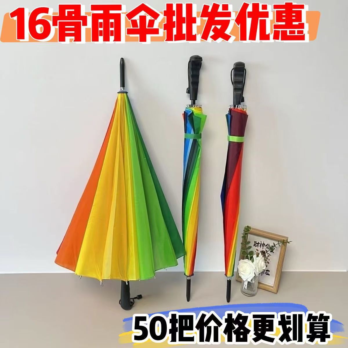 卸売16本骨レインボーアンブレラ、無地防風ストレート傘、ビジネス傘、広告傘、ロゴ印刷可能、ビジネスギフト