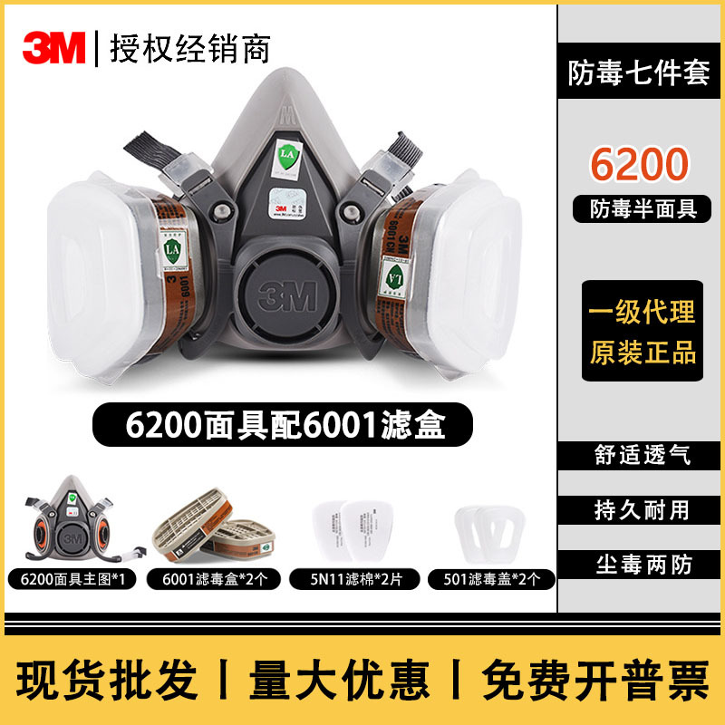 3m 2010防毒マスク7点セット全面カバー工業粉塵防止有機化学工業ガス異臭セット