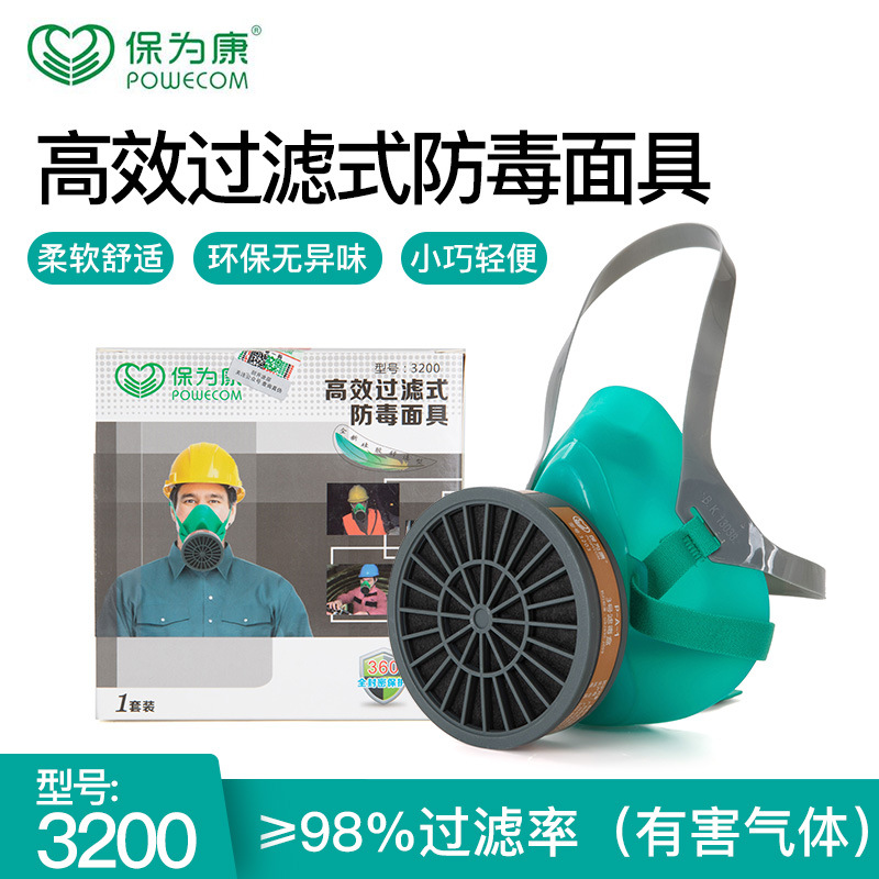 保為康3200シリカゲル防毒マスク320活性炭3カートリッジ化学工業塗装有機蒸気トルエン異臭