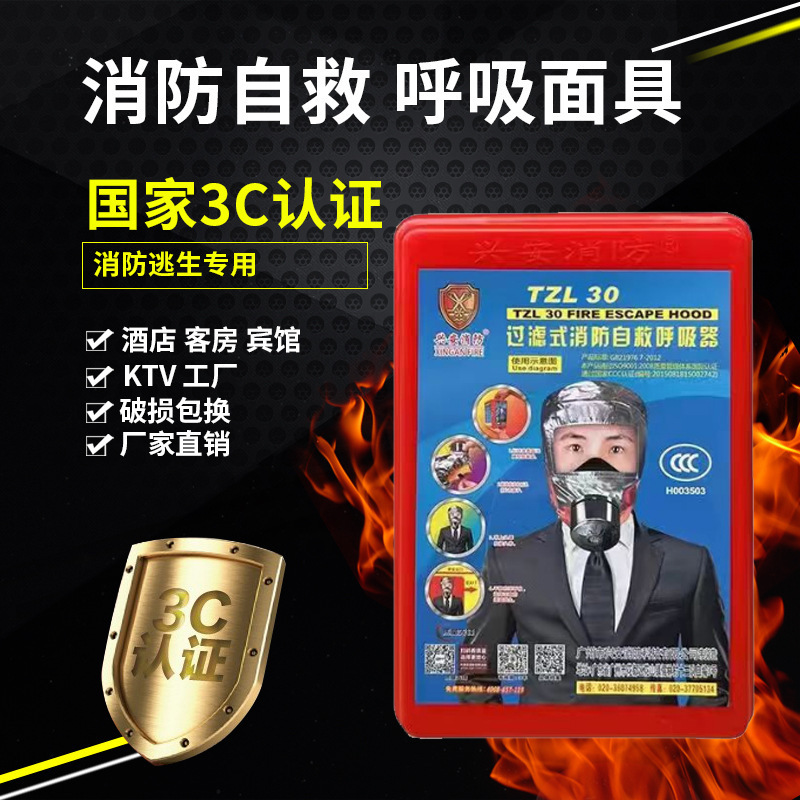 広東友安 TZL30 火災防毒防煙防火マスクフルフェイスマスクホテル火災避難自己救助マスク
