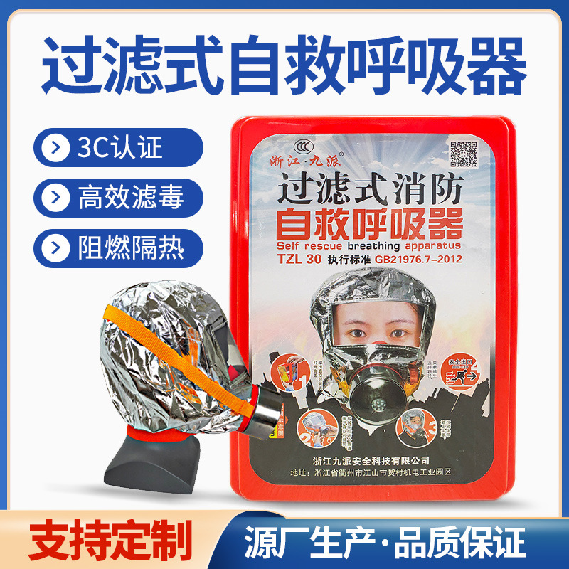 消防マスク火災防止マスク3C認証フィルタ式消防自己救助呼吸器九派消防マスク