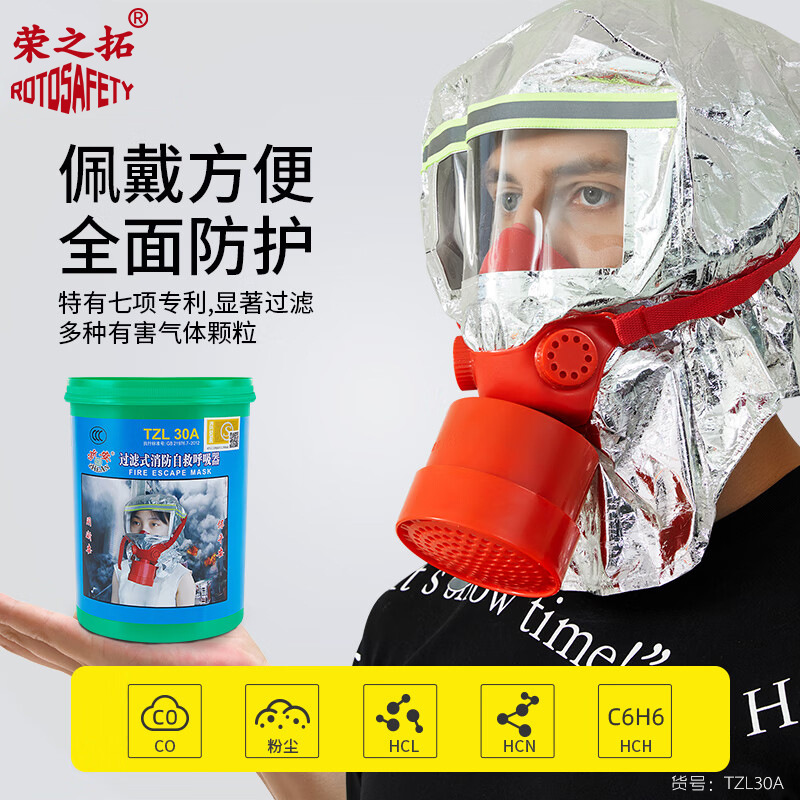 3C認証TZL30火災避難マスク家庭用ホテル防毒煙フィルター式消防自己救助呼吸器