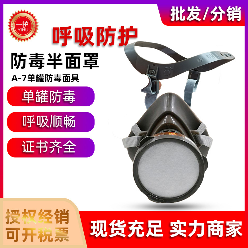 Yihu A-7 シングルタンクガスマスク、抗ガス、防煙、化学スプレー塗料、殺虫剤、自吸式フィルターガスマスク