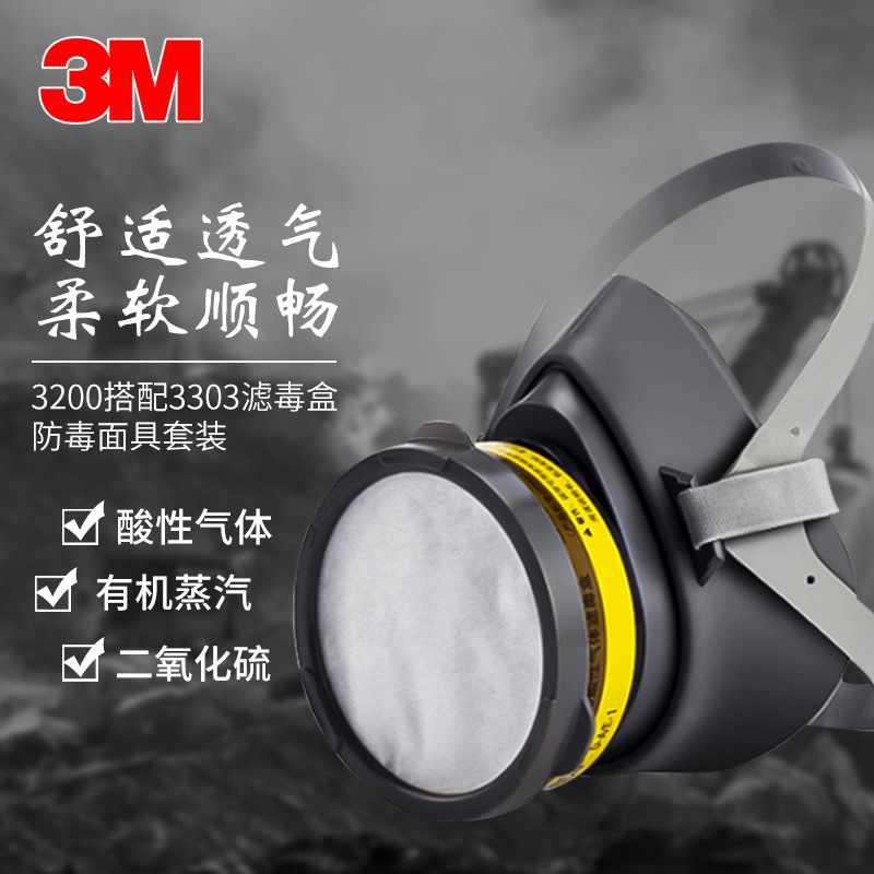 3m 3200は3303CN防毒マスクを配合しています。酸性ガスの二酸化硫黄有機蒸気防毒マスクです。