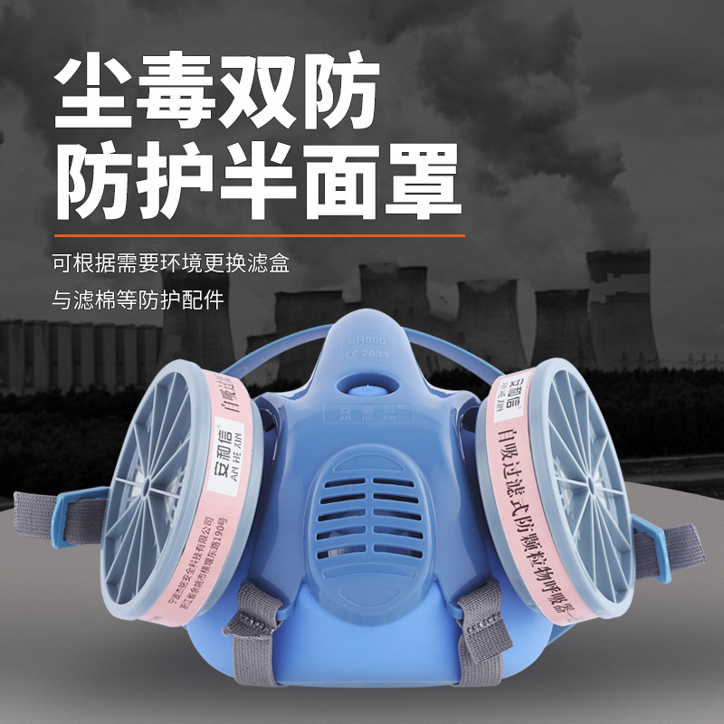 SR800 防塵・防毒二重マスク 工業用防塵・防毒マスク 二重缶自吸式フィルター保護防毒マスク