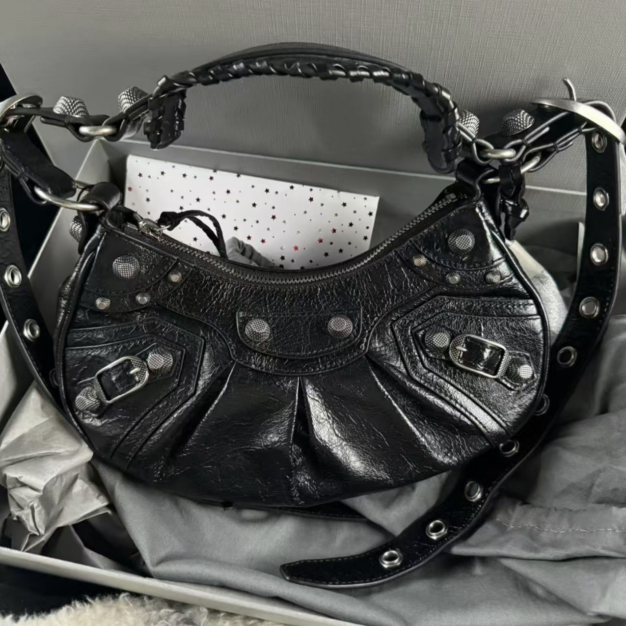 25 新しい b ホームオートバイバッグ脇の下バッグリベットタッセルスリーインワン三日月プリーツ牛革ショルダークロスボディレディースバッグ