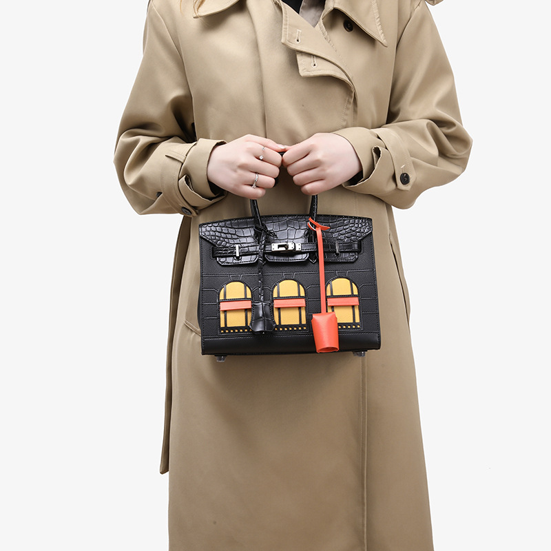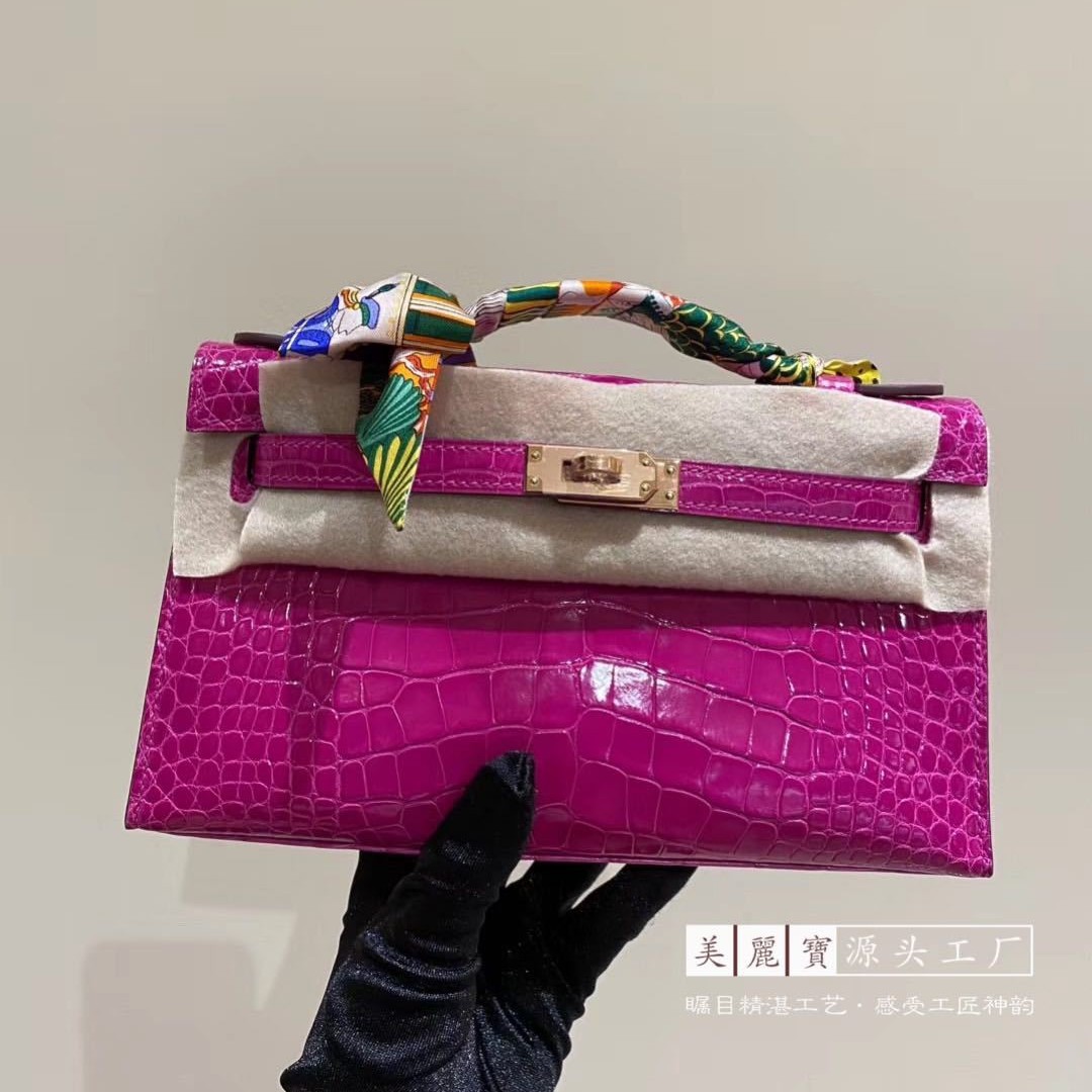 手作輸入ブロックアメリカ州真ワニ皮ケリー一代ミニ女性がバッグを持っている