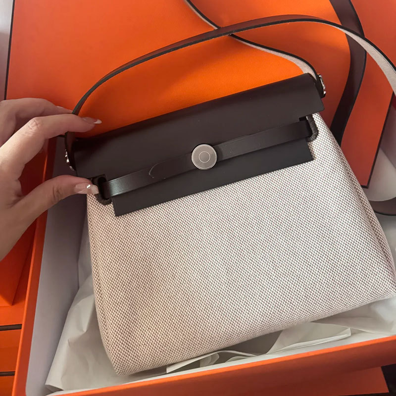 hjia 2025 新しいケリー ミニ ハーバッグ キャンバス バッグ 牛革 スプライシング バッグ シングル ショルダー クロスボディ ハイエンド レディース バッグ