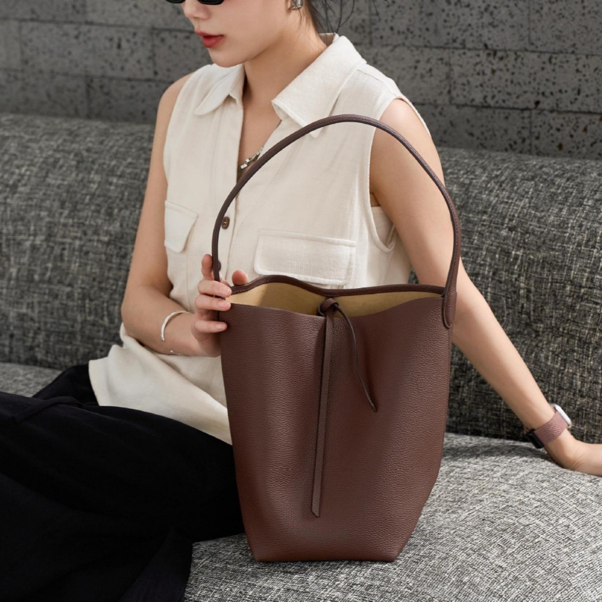 クロスボーダーTRバケットバッグ中型一層牛革本革バッグショルダーバッグ万能春夏ミニマリストスタイル軽贅沢スタイル