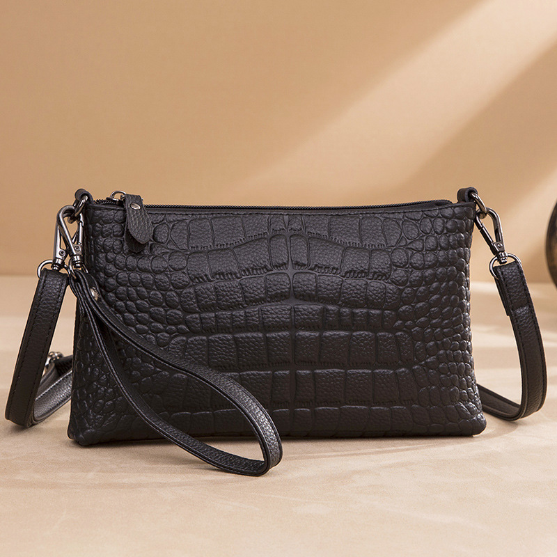 2025 新ファッションワニ柄本革レディースバッグ第一層牛革ショルダークロスボディバッグ女性のシンプルな多用途クラッチバッグ