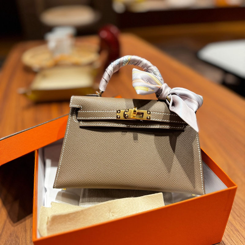 純手縫いケリーバッグ オリジナルエプソムレザーレディースバッグ ミニケリーバッグ 第二世代 ポータブルショルダークロスボディバッグ