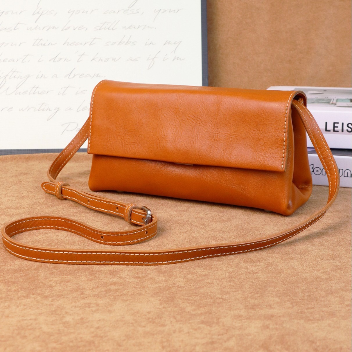 本革レディースバッグニッチハイエンドバッグポータブルショルダーバッグ斜めクロスボディバッグ第一層牛革レトロ脇の下バッグ6599