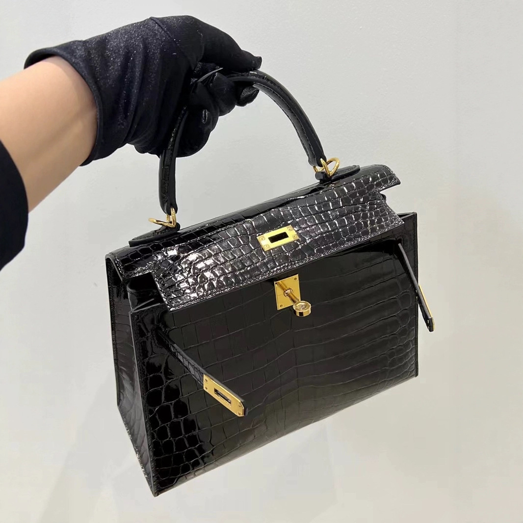 完全に手作りの高級ケリーバッグ 25 センチメートル女性の新しいワニ革ハンドヘルドショルダークロスボディバッグ