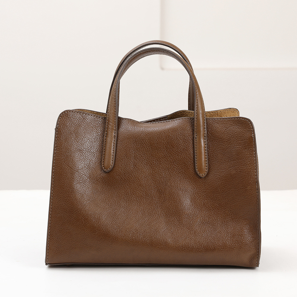 新型ハンドバッグ、第一層植物タンニン鞣し牛革、レディースカジュアル多用途トートバッグ、本革ショルダー/クロスボディバッグ