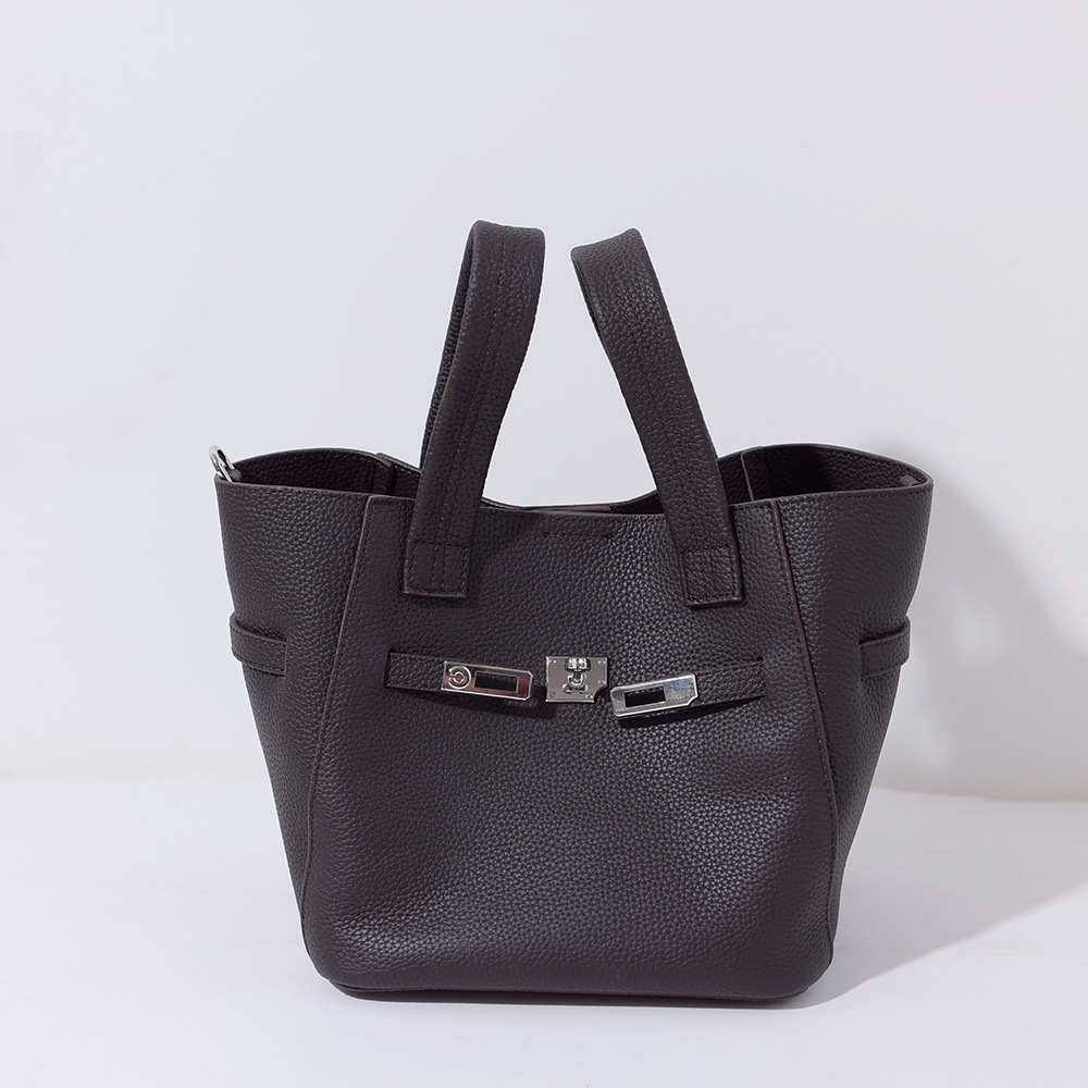 牛革百合シングルショルダーバッグバケツバッグ女性シンプル牛革大容量トートバッグ