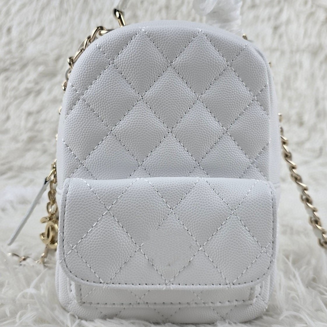 元工場の24朝c小香風菱格チェーンミニ双肩包レイシ紋牛皮真皮女包