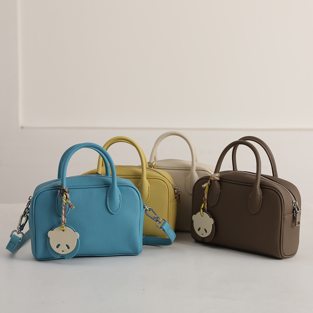 韓国版牛革製ボウリングバッグ レディースバッグ ハンドバッグ ショルダーバッグ ボストンバッグ 本革製ミニバッグ