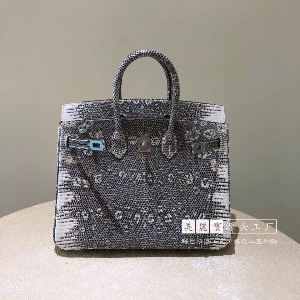 すべて手作り輸入真トカゲ革プラチナバッグ30cmの女性のハンドバッグの中に羊の皮の雪模様が入っています。