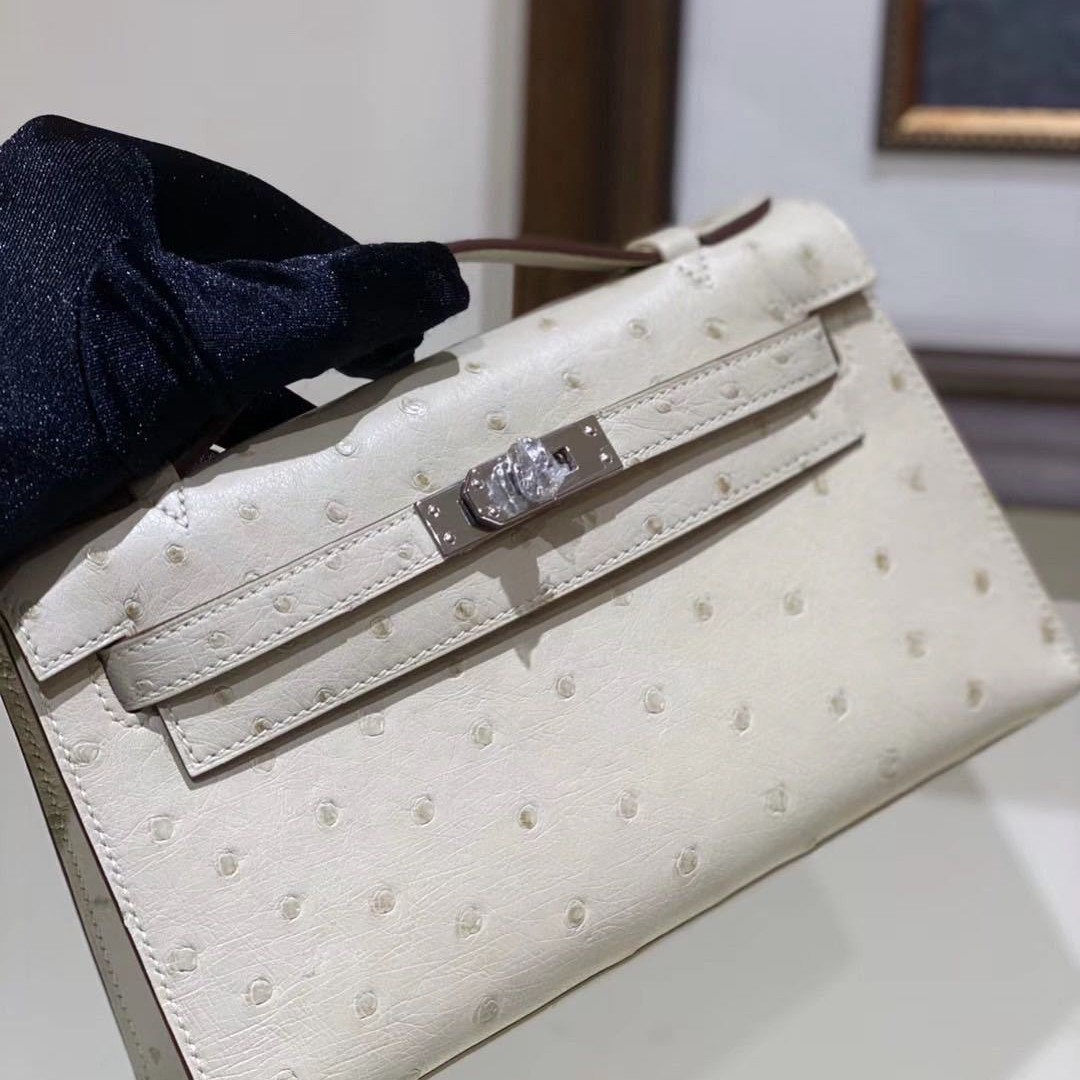 手作业インポート真 � � ダチョウ革ケリー世代ミニ女性手持ちカバン付きシングルショルダーバッグウール白