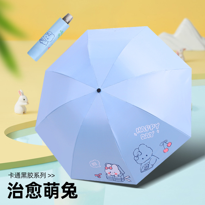 かわいいウサギの癒しの携帯用傘、晴雨兼用、女性用日よけ傘、ビニール折りたたみ傘、印刷広告傘