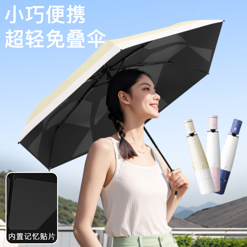 貼り付け式折りたたみ傘 全自動超軽量 折りたたみ不要 晴雨兼用傘 ブラックコーティング日よけ傘 軽量傘