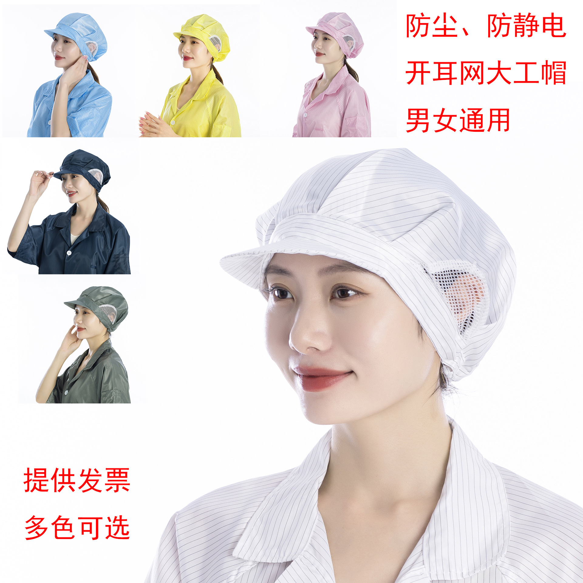 静電気防止耳網大工帽食品工場作業帽通気現場帽子男女防塵帽清潔帽