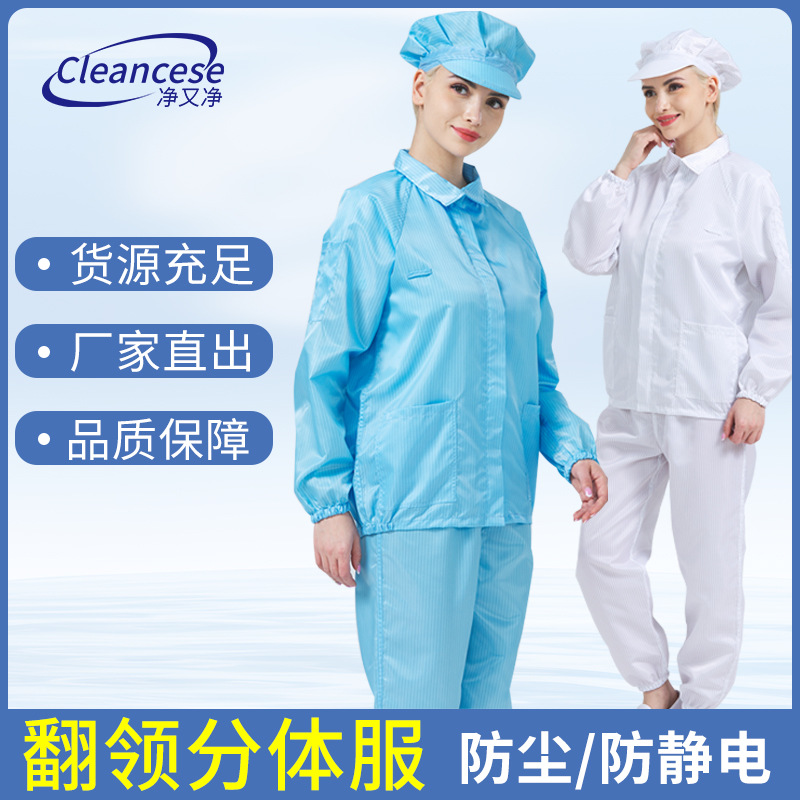 分体静電気防止服セット食品クリーン服ストライプ防塵作業服防護ラペル電子工場クリーン服