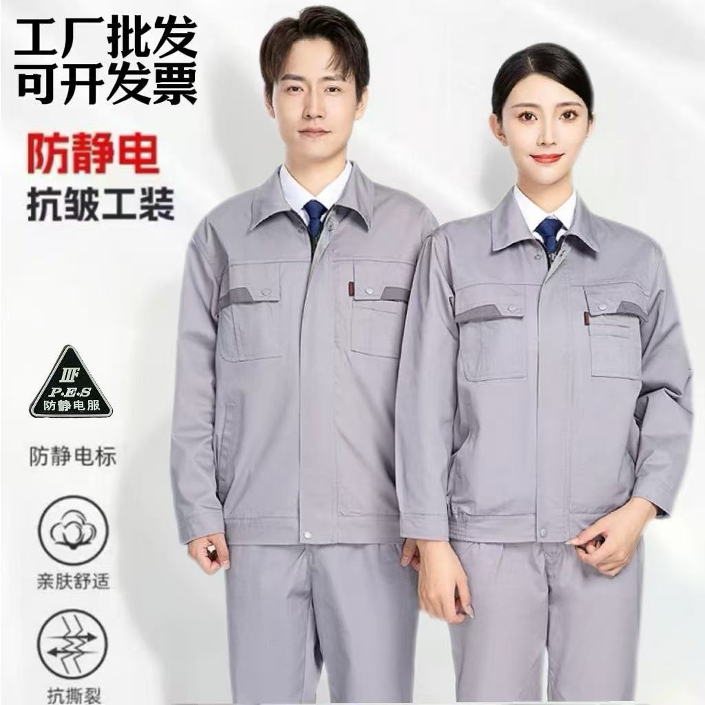 静電気防止工装通気ネットライニング色合わせ長袖静電気防止服セット冬服作業服セット印字可能