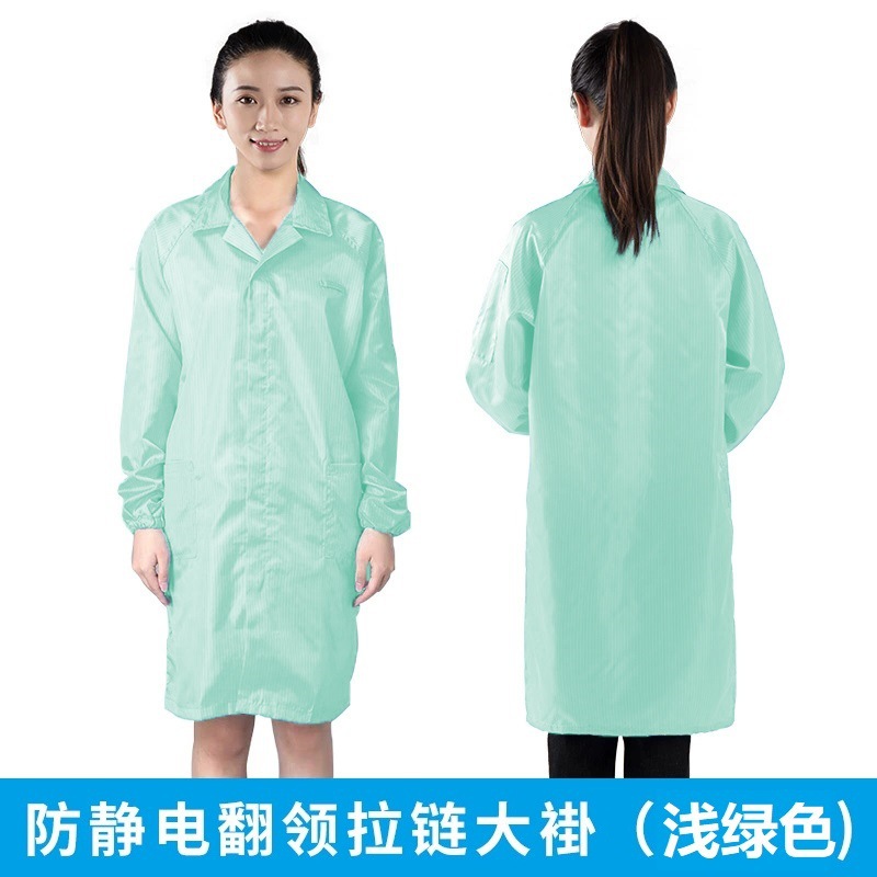 薄い緑色の静電気防止の襟のファスナーの大きい上着の中で長いタイプの男女の電子の食品の工場のほこりのない服の通気性の作業服