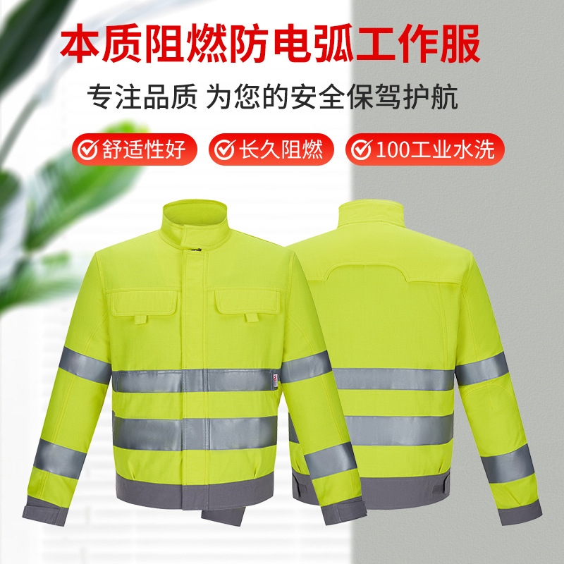 牧然防護越境アーク防止服蛍光黄色反射工装ジャケットアウトドア作業服
