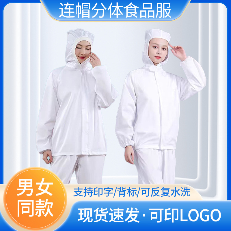 静電気防止フード付き分体食品服卸売りメーカー食品工場作業服青い白いクリーン服