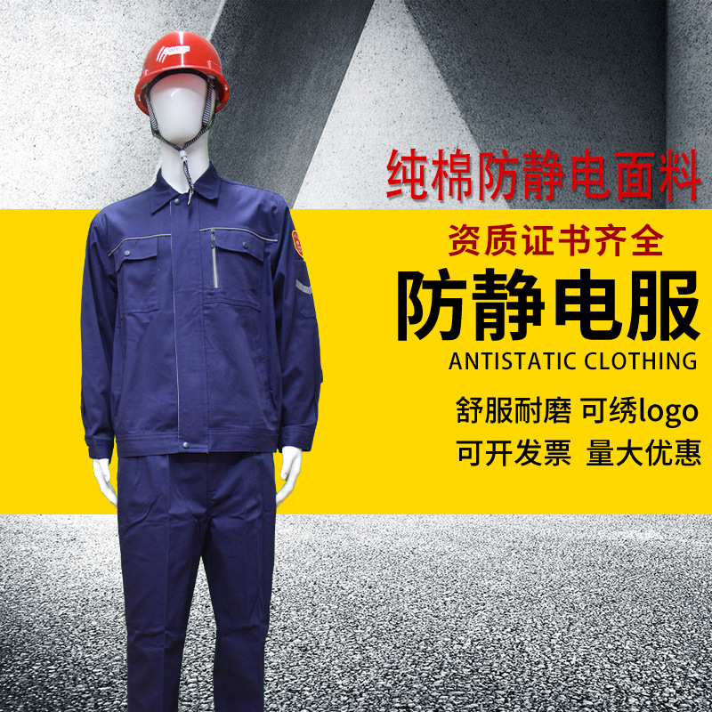 春秋純綿メッシュ静電気防止作業服セットガソリンスタンド化学工場防護服耐摩耗性労働保険服