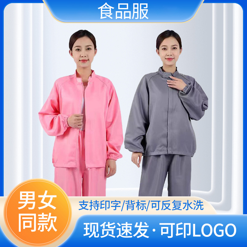 中山卸売り静電気防止服立襟分体クリーン服食品医薬工場ファスナー式工衣青白縞