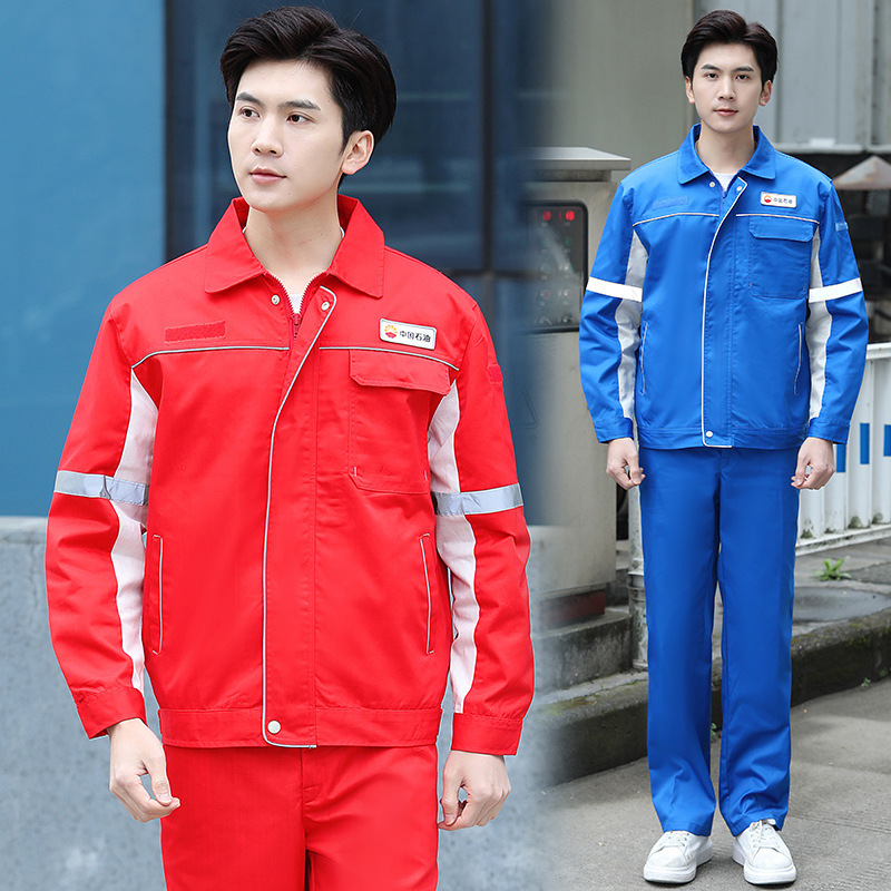 ガソリンスタンド作業服セット男女中石油中石化二重労働保険服静電気防止反射条工服