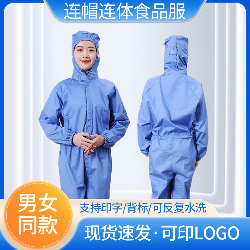 食品工場帯電防止ジャンプスーツカスタムメイドブルーフード付きスプリットスーツダストフリーワークショップクリーン作業服卸売