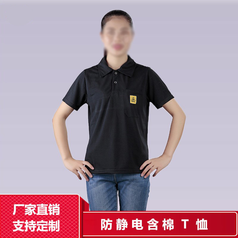 工場卸売り黒帯電防止poloシャツポリエステル綿帯電防止tシャツ刺繍印字ロゴ帯電防止tシャツ