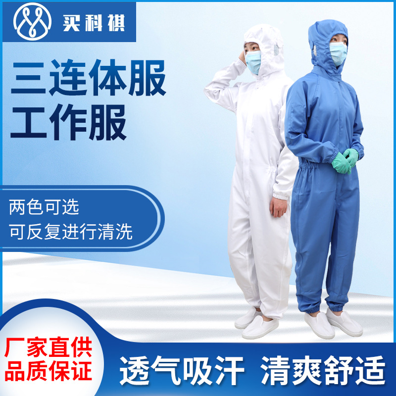 静電気防止連体服藍白クリーン服制作クリーン作業服帽子連体服三連体作業服