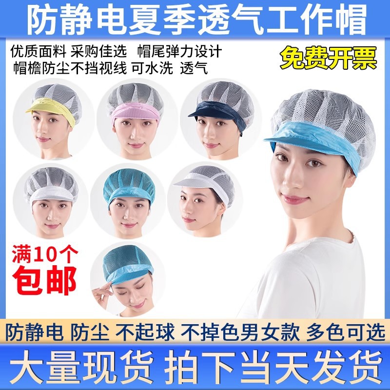 帯電防止大型作業帽、女性用帽子、防塵キャップ、作業帽、無塵室専用帽子、通気性耳開きメッシュ作業帽