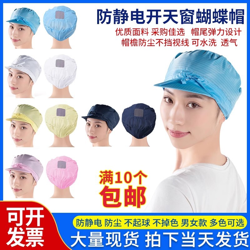 静電気防止サンルーフバタフライハット、男性用および女性用作業帽子、静電気防止電気ハット、防塵浄化ワークショップ通気性作業帽子
