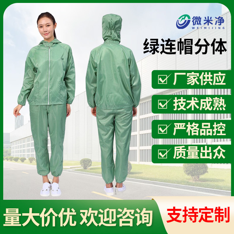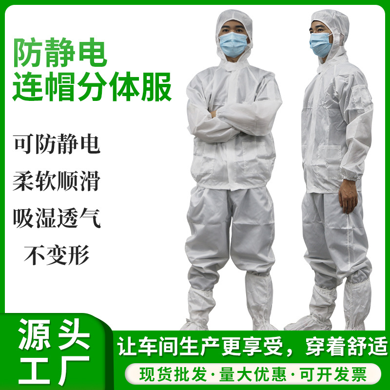 メーカー生産分体静電気防止作業服工場クリーン分体式フード付きクリーン防護服セット