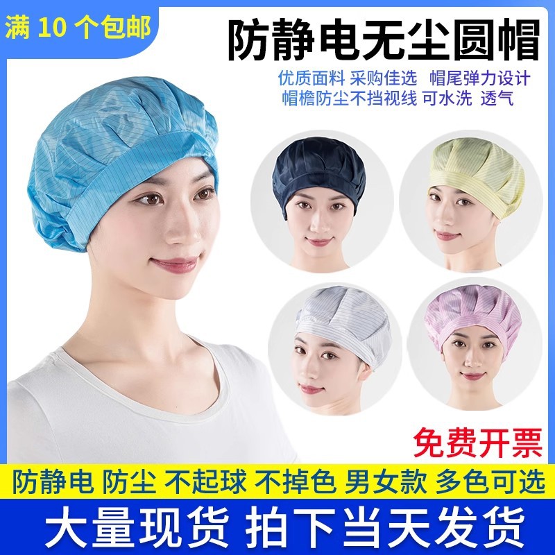 帯電防止防塵キャップ、防塵丸型キャップ、キノコキャップ、クリーンキャップ、作業用キャップ、女性用キャップ、食品電子工場用防塵キャップ
