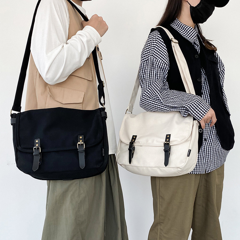 メーカー卸売り2021新型日韓insキャンバスバッグカジュアル女性斜め掛け純色シンプルファッションバッグカスタマイズ可能