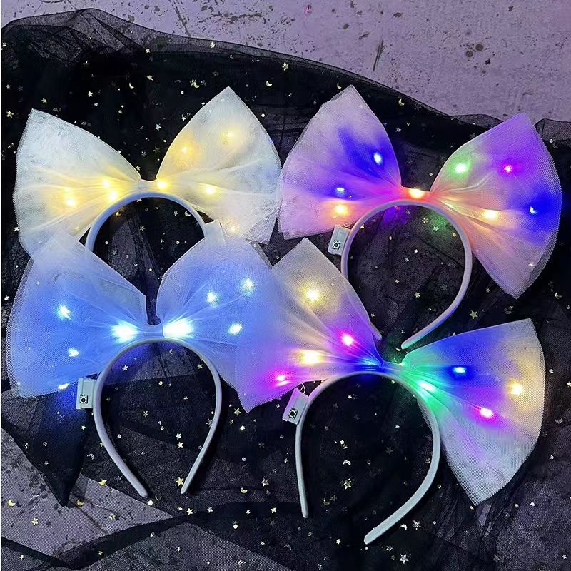 ネットで話題のヘッドバンド、蝶結びの光るヘアバンド、甘い写真撮影用妖精の頭飾り、コンサート用夜光おもちゃ、光るヘアアクセサリー