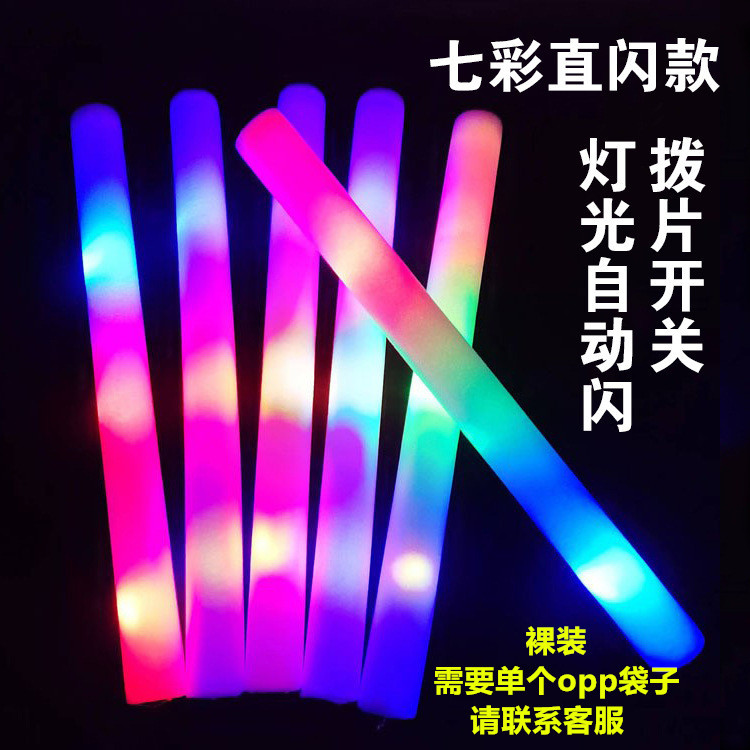 コンサートグロースティック、パーティー発光雰囲気小道具、7色ハンドヘルドストレートフラッシュフォームスポンジグロースティック