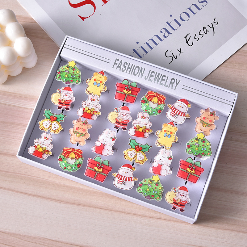 クリスマス子供漫画雪だるまヘラジカウサギ老人発光指輪フラッシュリング女の子男の子プレゼントボックス