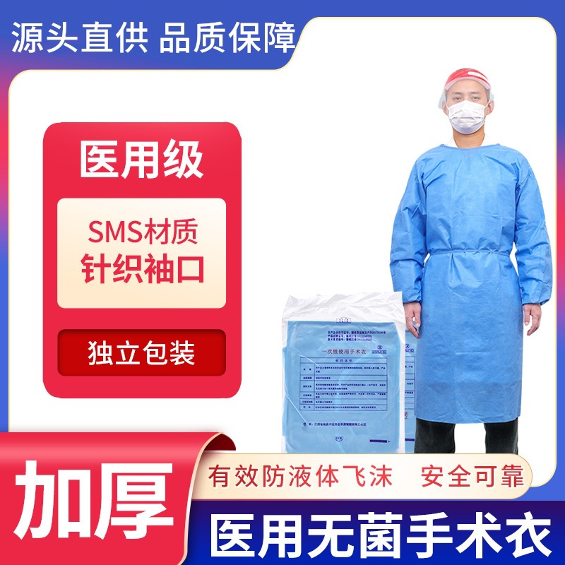 使い捨て手術服独立包装無菌医療用隔離服SMS不織布逆着式ニット袖口