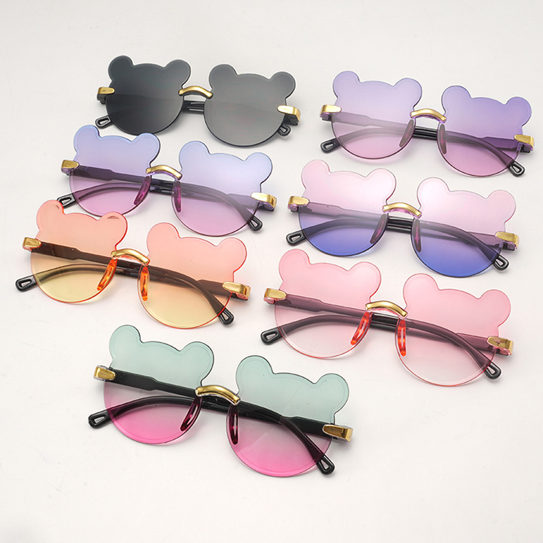 新型ベアーグラデーション子供日よけ日焼け止めサングラス縁なしかわいいアニメサングラス透明眼鏡