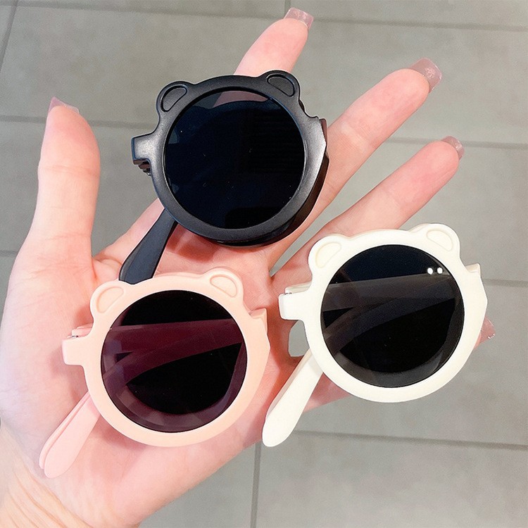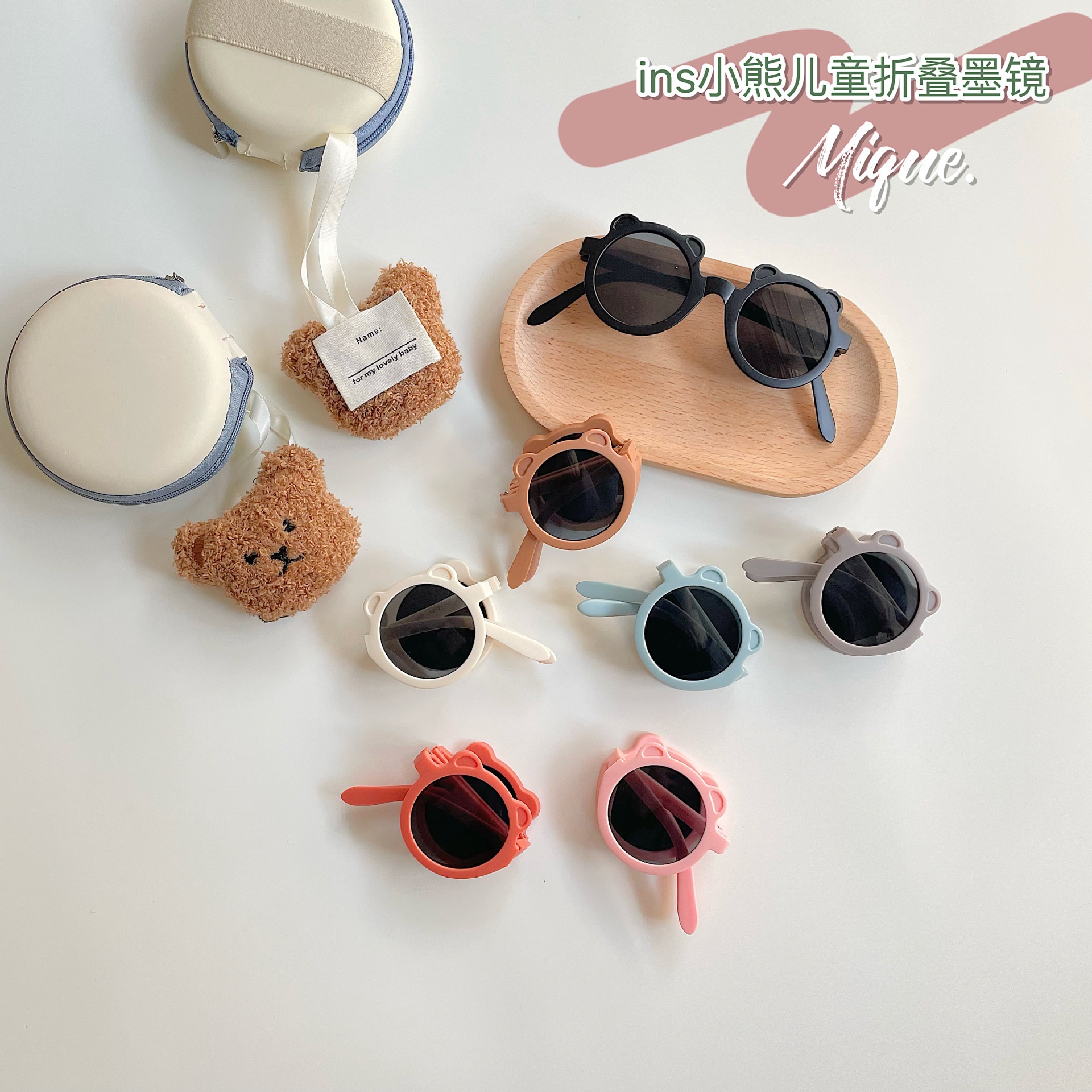 春夏新型子供携帯首折り畳みサングラスinsかわいい熊収納赤ちゃん日よけサングラス眼鏡