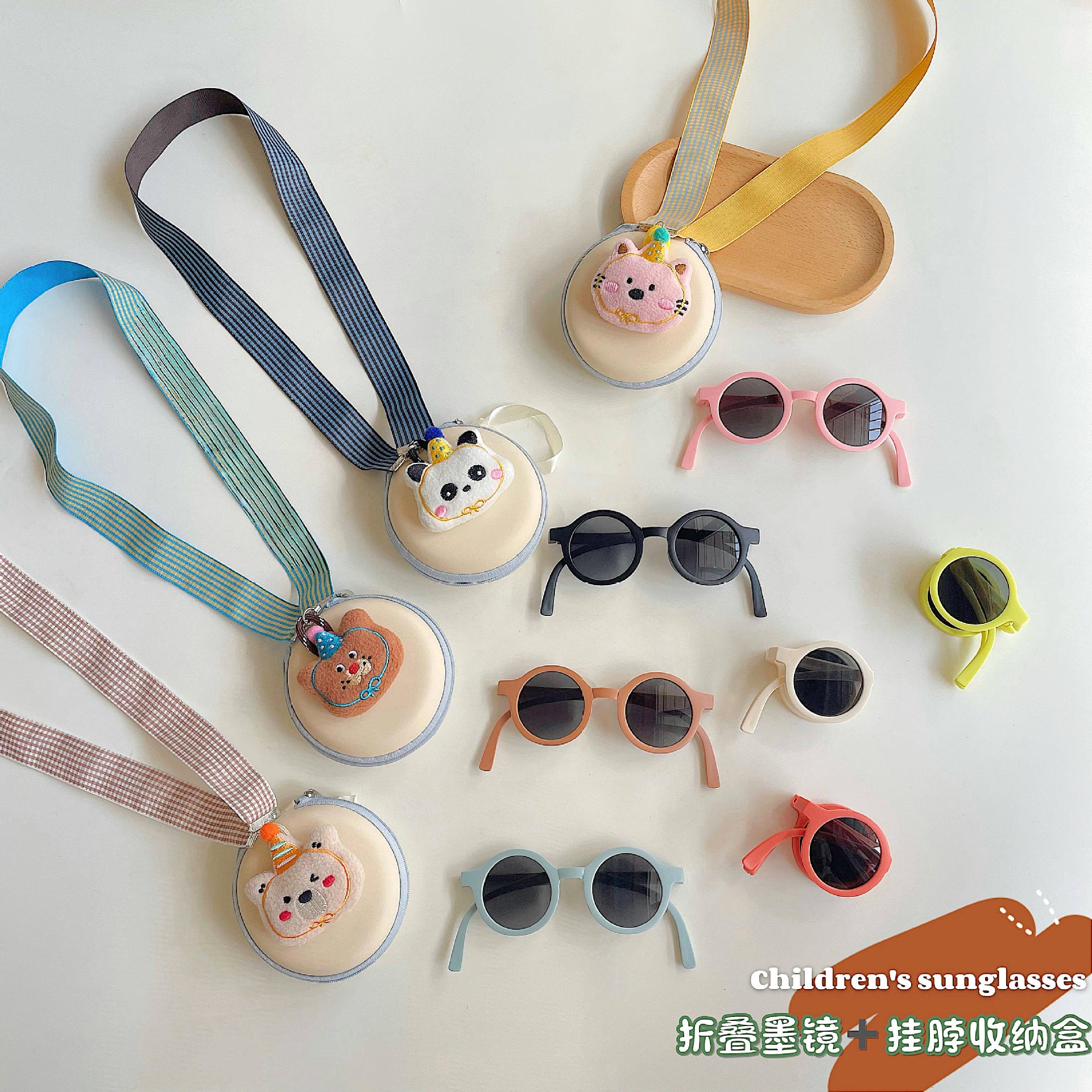 子供の衝突色折り畳みサングラスかわいい人形収納ケースセットins携帯赤ちゃんの日よけサングラス