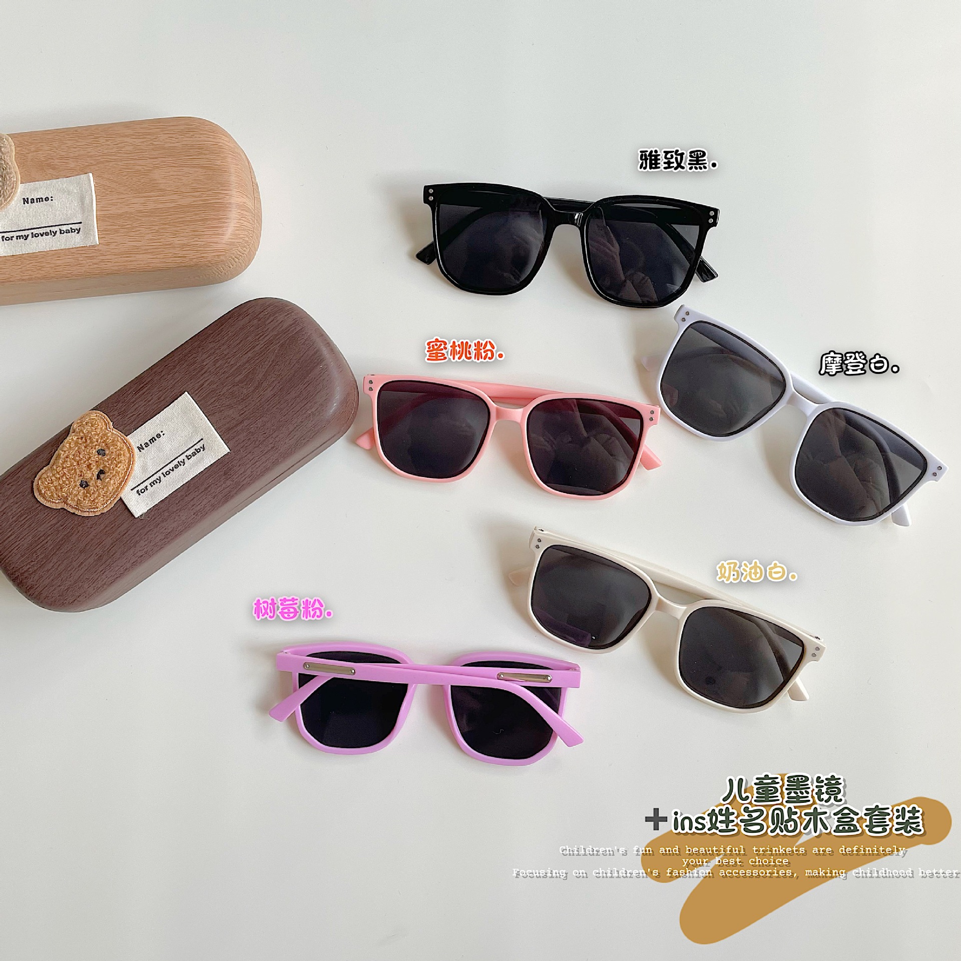 春夏新作グラデーション色子供サングラスins熊木箱セット赤ちゃん日よけ紫外線防止サングラス